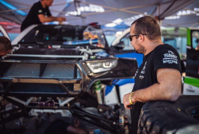 Po awarii skrzyni biegów na 1. Etapie rajdu, cały zespół intensywnie pracował nad powrotem do rywalizacji. Dzięki sprawnie przeprowadzonej akcji transportu potrzebnych części oraz wytężonej pracy mechaników, zespół wrócił do rywalizacji na 6. Etap z Hail do Rijadu. Był to z założenia …